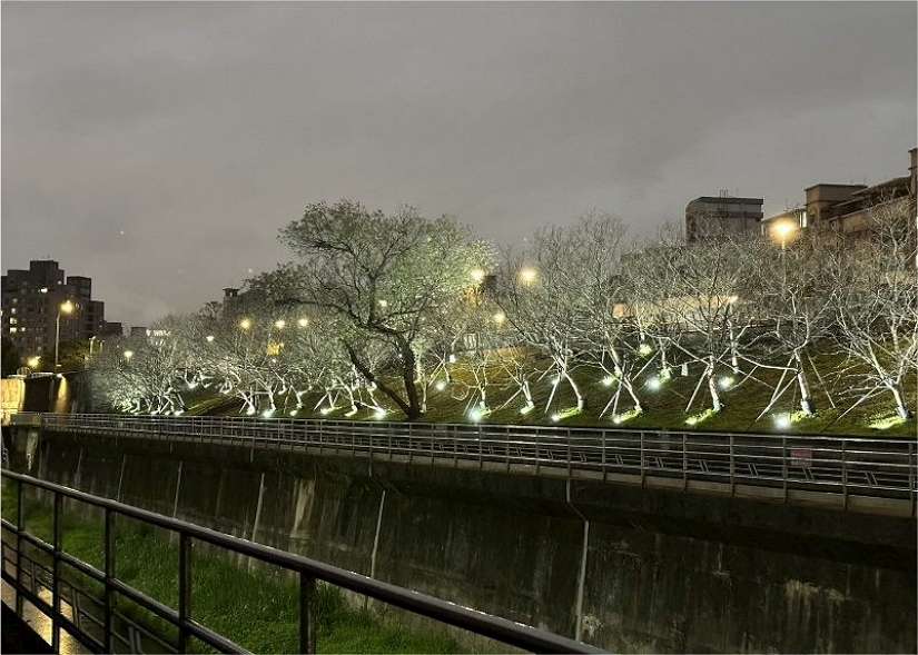 路燈工程隊長李七郎表示,今年夜櫻季以「永續共賞」為核心,不僅有浪漫的櫻花步道,更在樂活公園內精心妝點多樣化的裝置藝術與繽紛草花。並透過光影設計,讓藝術與植栽交織出視覺層次,這不僅是一場視覺盛宴,更結合了音樂、藝術與永續理念,重新定義夜櫻的迷人姿態,誠摯邀請民眾走進公園,親身體驗這場別具心裁、充滿層次感的春夜美學之旅。