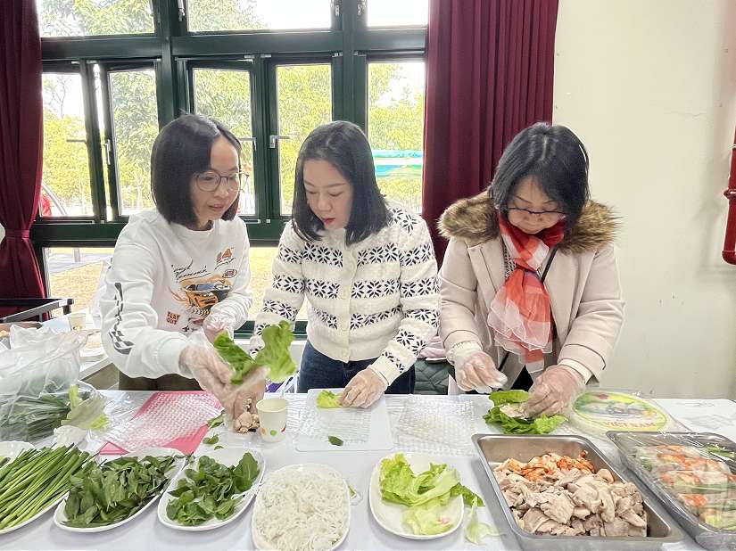 講師鍾菁-左-帶領民眾手作越南鮮蝦生春捲-圖/移民署提供
