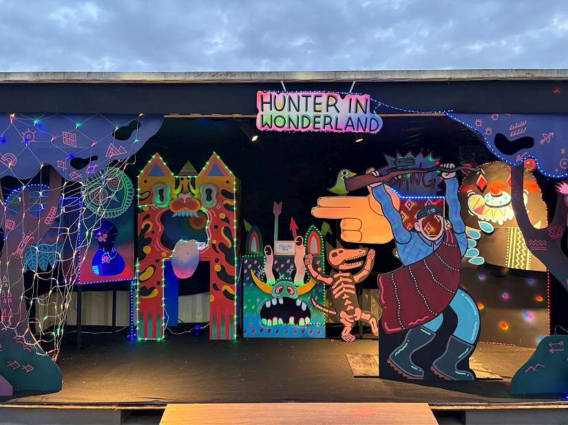 也正是在一次次進入山林的過程中,蔣沛珊Yabun Yuma慢慢察覺,過去熟悉的獵徑變得模糊,動物的足跡愈來愈少,原本的棲地被道路與經濟開發切割分段。這些親身經驗,成為《獵人的山林奇遇》創作基礎,現場動物燈飾錯落於貨櫃屋內的舞台,如同一場無聲卻持續上演的山林故事。每件作品旁皆附有文字說明,介紹動物們所面臨的棲地流失、環境破碎與人類活動衝擊等議題,在童趣與光影交織的氛圍中,引導觀眾在賞燈之餘放慢腳步,重新思索人與自然之間的距離與責任。