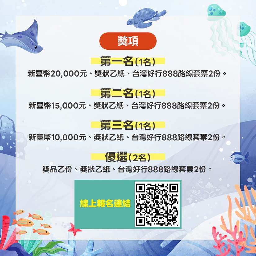 觀旅局指出,海線擁有深厚的人文故事與絕美的自然資源,無論是歷史悠久大甲鎮瀾宮或是近期很夯的台中海洋館都很值得到訪。為鼓勵優秀創作,活動獎項豐富,第一名可獲得2萬元獎金及台灣好行888豐后線套票,總獎項包含前3名及優選「最佳海線景觀獎」2名。評審團將由業界專家學者組成,針對主題契合度、創意表現、影像品質等項目進行綜合評選,期待能發掘出最具共鳴與感動力的海線故事。
