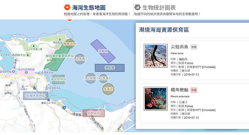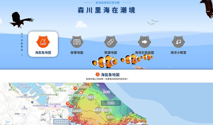 海科館長王明源表示,望海巷環境生態地圖不僅是一套地理資訊系統,更是結合教育、科學與公共服務的重要平台,網站中更可查詢到海灣水下即時影像(夏季直播)、岸際攝影機畫面、潮境方舟船舶資訊,並可查詢館區周邊景點介紹與歷史變遷、海灣常見生物及海洋科學小知識等,網站內處處可查詢到可愛的生物照片,十分適合親子一同探索,讓所有人都能共同觀察、共同守護這片海洋。同時,系統也能支援博物館的展示與教育課程,能透過互動式地圖理解海洋生態環境的真實樣貌。