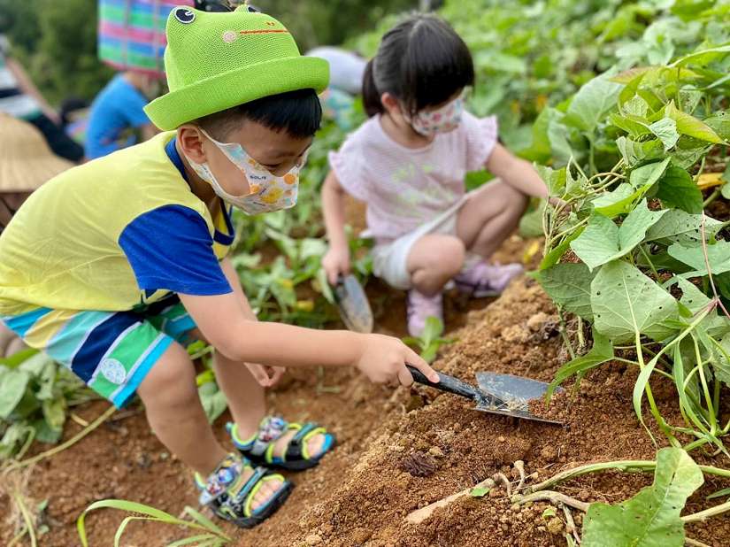 學生使用移植鏝小心挖出甘藷,體驗收成的喜悅-圖/新北市政府提供