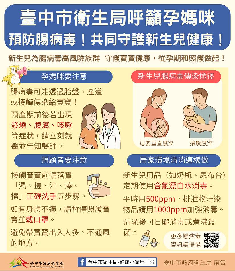 呼籲孕媽咪預防腸病毒,共同守護新生兒健康圖卡-圖/台中市政府提供