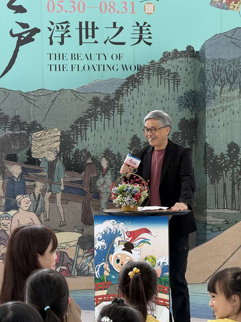 故宮南院親子藝術月今年以「浮世藝想曲」為主題,於(27)日上午由黃永泰副院長和「咖哩玩劇團」一同揭開序幕。現場小朋友在劇團的帶動跳下,開心手舞足蹈,迎接暑假的來臨。黃永泰副院長表示,歷年來,南院的親子藝術月都規劃豐富有趣的活動,讓大小朋友在博物館裡邊玩邊學,從2019年開始,好多家庭變成南院的粉絲,不約而同於夏日回訪;黃永泰說,親子藝術月是可以從早玩到晚、從館內到園區,日夜都精彩的活動。從白天館內的實境解謎、親子手作、集章遊戲、樂器探索、兒童劇場、江戶電影院等,到夜晚戶外水舞燈光秀與無人機展演,是暑假不容錯過的盛會。
