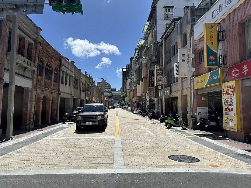 新工處工務科科長蕭志龍表示,本次路面更新範圍位處萬華文化核心區域,鄰近剝皮寮歷史街區、臺北市鄉土教育中心、東三水街市場及新富町文化市場等地標,為了襯托地方文化底蘊,鋪面選用質感細膩的花崗岩材質,並以特殊色彩配置磚面融入街區意象,提升通行體驗之餘,也塑造具地方特色的街道景觀。