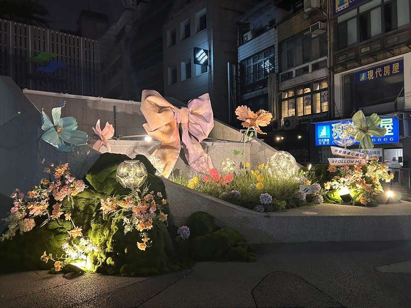 公園裡燦爛花牆及特色造景,融合季節花卉、綠意植物與創意設計的裝置藝術,並配合夜間燈光效果,巧妙點綴營造浪漫氣氛,吸引大家目光。「台北捷運Go」App會員前往任一裝置藝術處拍照,並上傳至FB或IG打卡標註「#我愛心中山」,即可兌換獨家好禮。