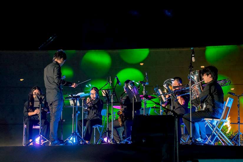 音樂會最大亮點為跨界共演的「百卅衛土,傳世義勇」紀念儀式,結合汲音交響管樂團、山城藝造、Acidflow靈遊創作劇場及在地居民、學童參與,以五幕行動劇再現乙未歷史情境,從孩童嬉戲的和平光景,到戰火交織的激昂抗爭,再到對英烈的追思與千人祝願,高潮迭起、情感真摯,現場氣氛莊嚴感人。