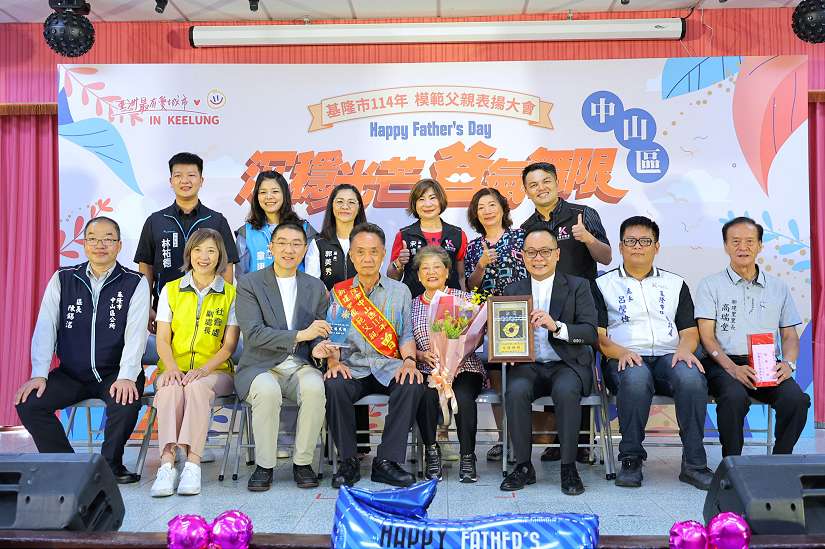 基隆市中山區公所(6)日於通明里活動中心舉辦「114年模範父親表揚大會」,由市長謝國樑親自頒發獎牌與紀念品,感謝模範父親們對家庭無怨無悔的付出與守護,並提前祝賀父親節快樂。