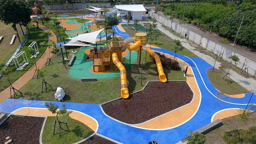 王縣長表示,園內吸睛的設施包括6.7公尺高的熊造型高塔溜滑梯、獅子造型滑索、叢林擺盪鞦韆、遊戲沙坑、體健設施與大地爬網等等,非常適合大小朋友一同遊玩,搭配可愛造型公仔,可望成為打卡拍照的新熱點。熊趣米公園對面設有專為幼兒設計的「親子公園」,藉由高鐵橋下的新建棧道相互連結。鄰近的托嬰中心正加緊施工,預計明年8月完工,屆時可提供更完善的親子休憩與托育服務。