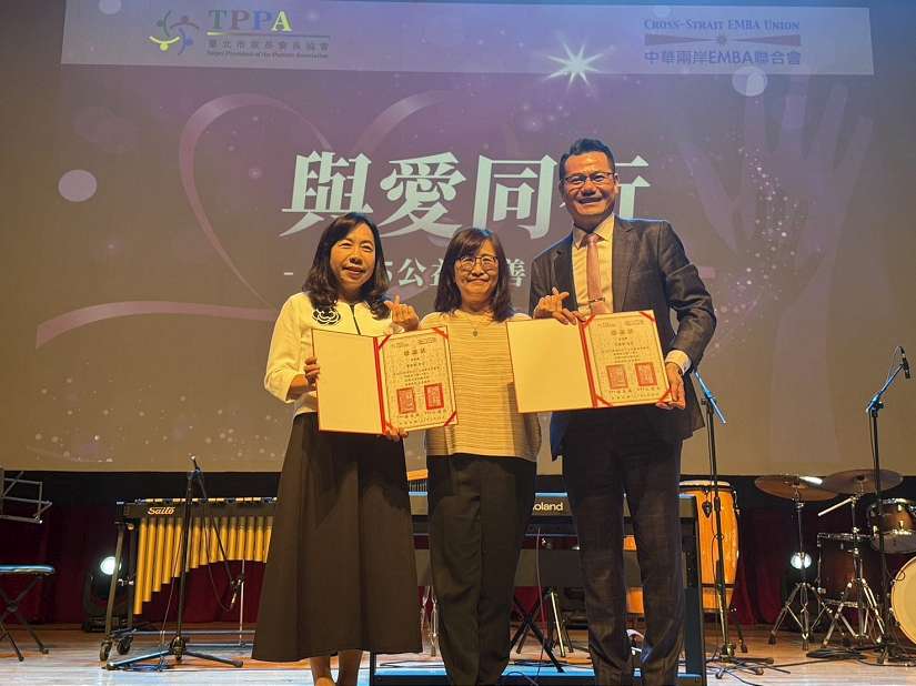 臺北市政府林副市長親自頒發感謝狀給台北市家長會長協會理事長楊美娟女士及中華兩岸EMBA聯合會理事長江建欣男士-圖/台北市政府提供