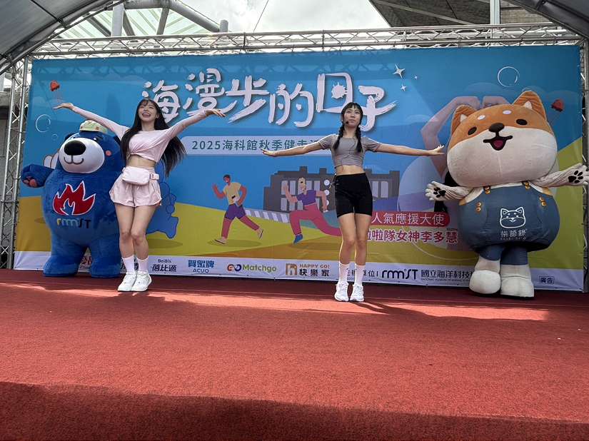 為了替活動增添亮點與活力,主辦單位特別邀請韓籍啦啦隊人氣偶像李多慧擔任應援大使,攜手海科館人氣角色「北火熊」與「柴語錄」,帶來熱情洋溢的開場舞與熱身操,瞬間炒熱現場氣氛,隨後李多慧更親自加入健走行列,沿途與民眾互動,成為當日最矚目的焦點。