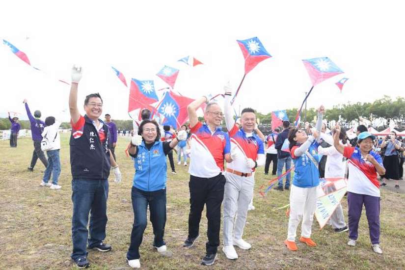 今年放飛的風箏還有「TEAM TAIWAN」橫幅風箏、象徵喜慶團圓的「Q版紅粄風箏」及各式國旗風箏,展現節慶喜氣與凝聚團結精神;又適逢台灣光復節,再以「慶光復・客家好風光」為主題,結合風箏藝術、歷史意象與客家文化,讓慶典更具文化深度與時代意義。