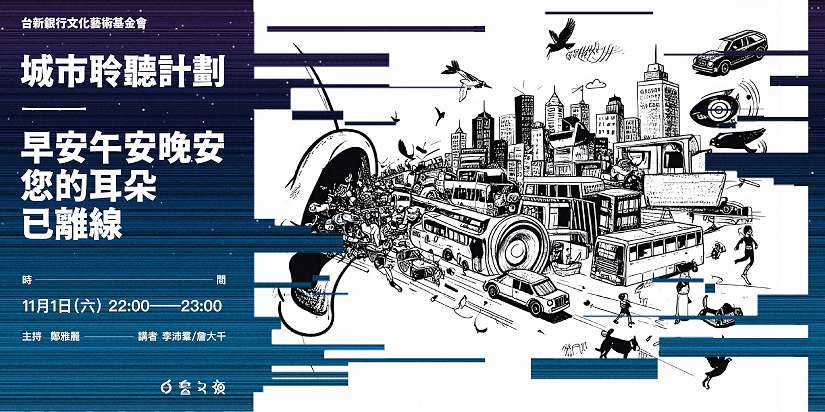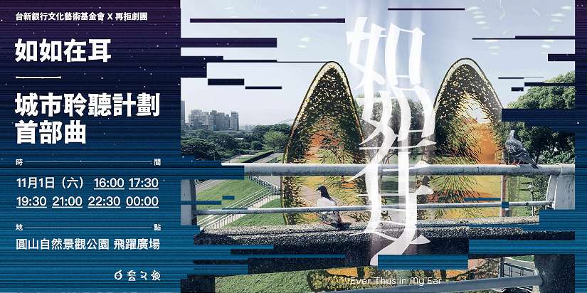 長期關注台灣當代藝術創作的台新銀行文化藝術基金會,由台新新光金控支持贊助,參與白晝之夜,從永續發展的議題出發,委託再拒劇團創作,推出《如如在耳》城市聆聽計畫首部曲。作品結合現場表演以及不同場所的實時收音,經由虛擬的podcast電台,將民眾帶進各種動物的視角,可能是路上經過的柴犬,可能是早上在公園覓食的金背鳩,甚至是街頭的貓咪等。這些動物跟我們一樣生活在城市中,面對喧囂與無法理解的城市噪音時,動物們也將做出各種回應。