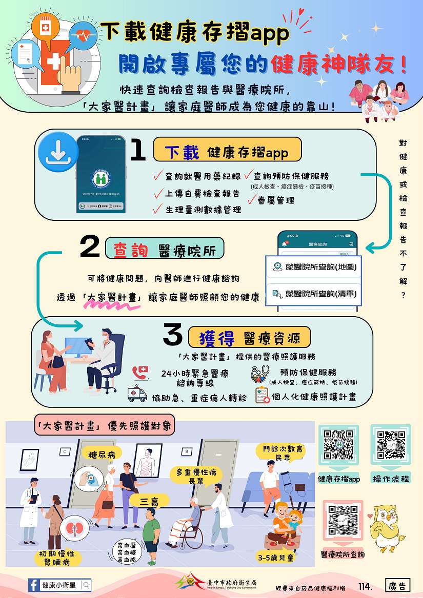 衛生局同時提醒民眾也可運用「大家醫計畫」及「全民健保快易通/健康存摺App」即時掌握就醫紀錄、檢查結果與用藥資訊,提升健康管理的便利性與智慧化。更多中風防治與健康檢查資訊,請上中央健康保險署查詢平台或台中市政府衛生局官網( https://www.health.taichung.gov.tw/2916872/post )查詢。