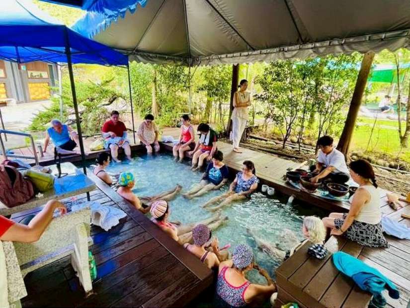 配合季節進入秋季,由觀旅局委外經營管理的龜丹溫泉體驗池也與SoJoy極悅療癒工作室合作推出「溫泉X瑜珈X聲缽活動」,本系列活動兼具身體肌肉放鬆、神經紓緩平衡,對於疏解長期工作壓力很有助益,可讓身體從內而外提升自癒力,找回輕鬆的自己。
