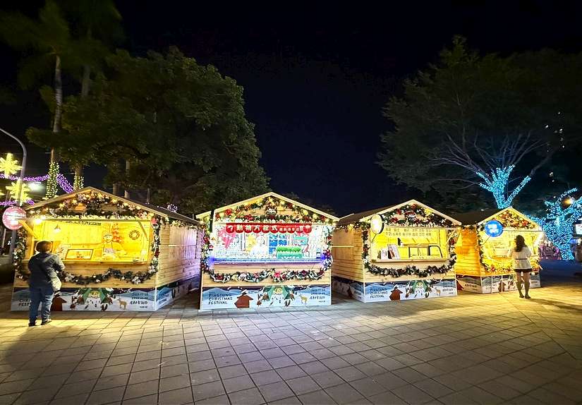 傳播處表示,屏東公園設有免費聖誕拍貼機及4間特色賣店,提供熱可可、法式鹹派等甜蜜美食,讓民眾在溫馨的夜晚中感受濃厚的聖誕氛圍。縣府邀請民眾趕快安排一場屏東之旅,與親朋好友一同度過一個難忘的聖誕節。
