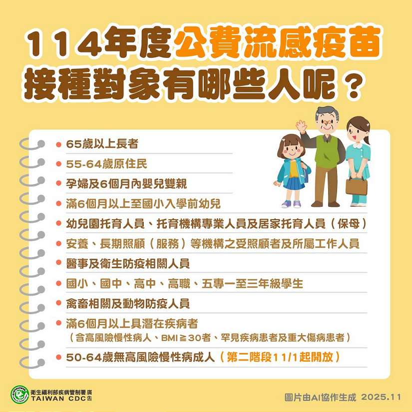 公費流感疫苗合約院所及接種對象資訊(含假日接種日期): https://gov.tw/5cJ