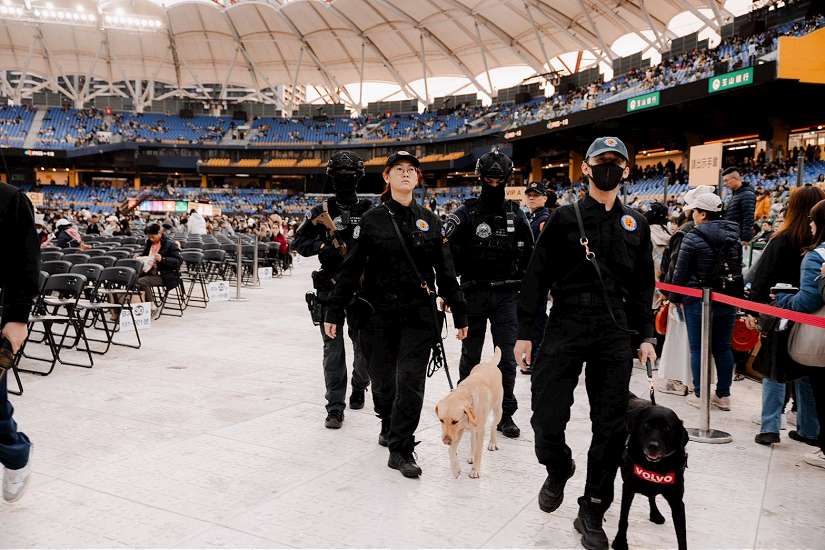 欒局長強調,因應大型群聚活動可能衍生的風險,警察局已全面強化警戒與警力部署,整合制服員警、便衣刑警及特勤霹靂小組等警力,並出動偵爆犬加強會場及周邊巡檢,落實即時通報與快速處置機制。活動期間,警方亦於各出入口協助維持秩序,與主辦單位共同執行安檢作業。不少進場民眾也表示,現場「見警率」明顯提升,看到穿著制服的員警在場引導與守護,讓人感到安心,也為整體觀演體驗加分。