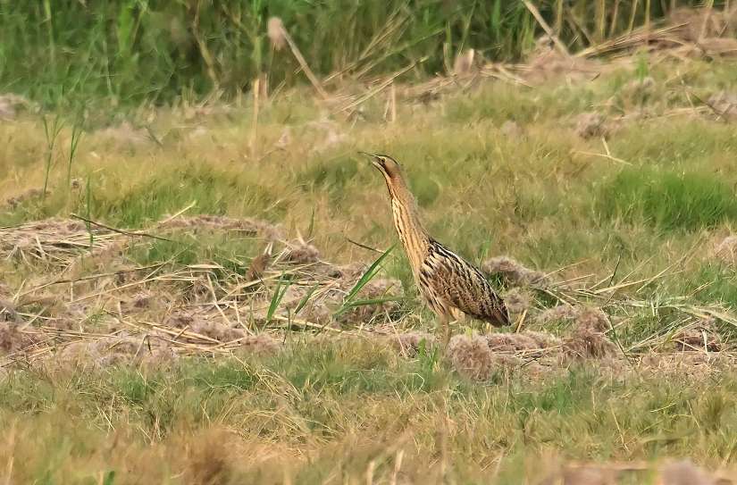 工務局公園處指出,大麻鷺又稱大麻鳽,屬於鷺科麻鳽屬,是隱匿性極高的冬候鳥。牠們身體粗壯,羽色呈褐黃與黑色相間的斑紋,具極佳的保護色,可完美融入蘆葦叢或濕地草生環境。大麻鷺最著名的行為就是在警戒時會伸長脖子、全身筆直,如同枯草般靜止不動,提升隱蔽效果,讓牠們成為難以觀察與拍攝的鳥種之一。其主要棲地多為蘆葦濕地、沼澤,平時獨居性強,以魚類、蛙類、昆蟲及小型水生生物為食。