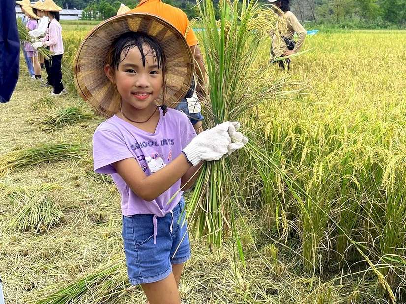 連續7年辦理夏日樂學的臺南市官田國小,除了將在地特色資源融入校本課程內容,也與美國及日本學校交流食農教育,期待家鄉文化在地生根之餘,也能走向國際。114年,該校以「官田小菱營業中」為主題,規劃實作與跨域課程,帶著學生們走出教室,深入認識在地菱角文化與友善農耕精神。宜蘭縣內城國中小化育分校的夏日樂學課程則結合校本特色課程,以本土語沉浸式教學,帶領學生親近土地,體驗割稻拾穗、挑擔稻,真實感受家鄉的美好,進而推動在地文化向下扎根。