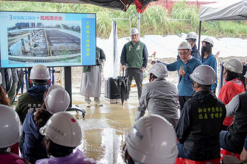 宋德仁局長進行鳳鳴滯洪池工程進度簡報說明-圖/新北市政府提供
