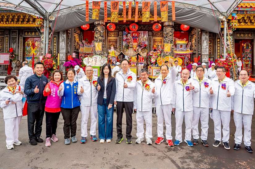 張市長與貴賓於廟前合影-圖/桃園市政府提供