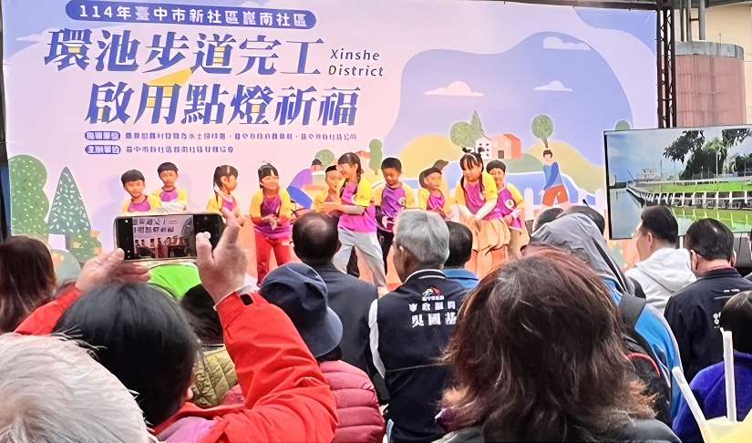 台中市新社區崑南社區發展協會獲「114年農村再生執行計畫」補助辦理環池步道改善工程,由台中市政府農業局委託新社區公所執行。工程今年順利完工,並於昨(13)日下午在崑南社區活動中心舉行「完工啟用暨點燈祈福典禮」,象徵社區環境再升級,為地方帶來更安全、舒適與友善的生活空間。