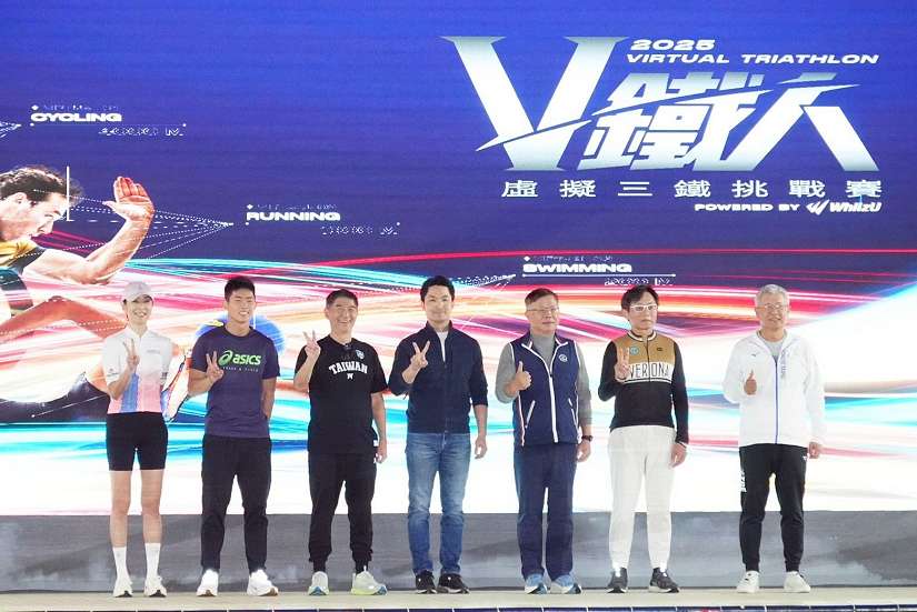 蔣萬安於致詞時表示,虛擬三鐵競賽在國外已逐漸成為趨勢,透過科技應用,讓民眾不受天候影響,在室內也能完整體驗游泳、騎車與跑步等運動,為運動參與開創更多可能。