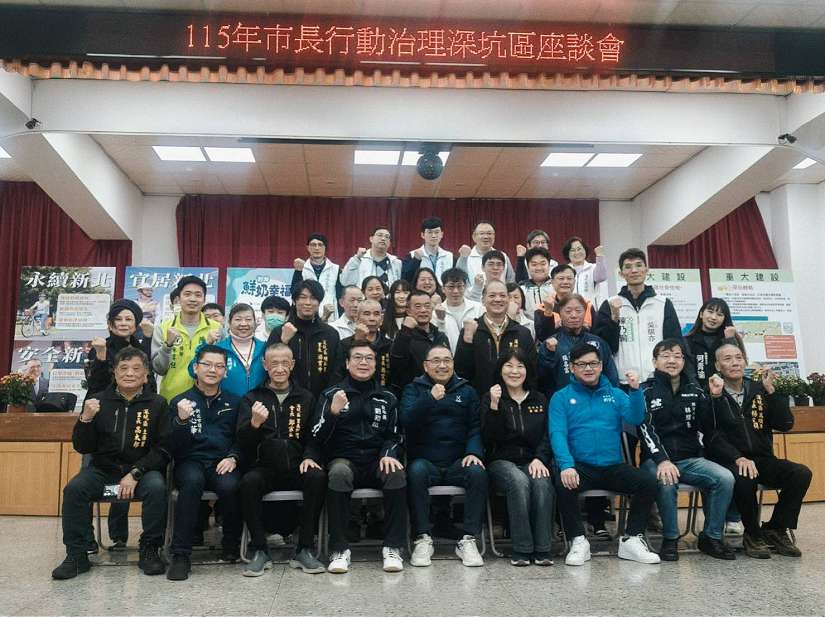 新北市長侯友宜於(22)日率領市府團隊來到深坑區召開行動治理座談會。侯友宜表示,市府正全力推動深坑輕軌與基礎建設,並結合已動工的社會住宅積極爭取公益回饋設施,市府將與里長並肩作戰。