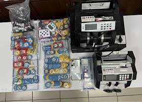 嘉義縣警察局日前接獲民眾檢舉,朴子市某桌遊館涉嫌以桌遊名義掩護賭博行為,經蒐證完備後於2月24日深夜持搜索票前往查緝,當場查獲負責人、會計及現場工作人員等犯嫌7名、賭客13名,並查扣現金10萬600元、籌碼93萬30分等賭資及撲克牌2副、天九牌1副、骰⼦61顆、計時器1臺、點鈔機2臺及監視器主機3臺、對講機等證物,全案依刑法賭博罪嫌移送偵辦。警方呼籲業者切勿心存僥倖,勿以合法營業掩護違法行為,以免觸法。