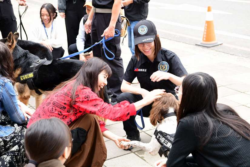 嘉義縣長翁章梁特別於今日下午前往嘉義縣警察局慰勉投入治安維護的員警,其中支援警力有保一總隊維安特勤大隊13人、保三總隊警犬分隊4人3犬及刑事局防爆小組1車3人。現場展示員警應勤裝備及因應重大活動維安使用的特殊器材,有金屬探測器、防爆毯及防爆機器人等,另外長相可愛的偵爆犬相當吸睛,負責偵爆犬訓練的員警表示,通常挑選年齡在2歲以下的成犬,接受約3至6個月的訓練,通過評核後才能成為合格偵爆犬,役期通常約4至7年。
