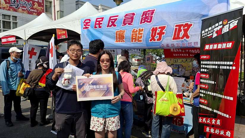大甲媽祖遶境進香活動行經嘉義新港,帶動地方人潮與熱鬧氛圍,新港街頭擠滿隨香信眾與遊客。嘉義縣警察局把握人潮聚集時機,於新港奉天宮前廣場設置廉政宣導攤位,推出「闖關有獎徵答」活動,將反貪腐、反賄選、反詐騙及公益揭弊者保護法等議題融入互動遊戲,吸引不少民眾駐足參與。