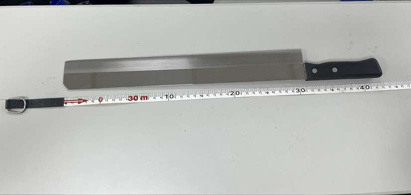 龍姓男子步態搖晃、手中持西瓜刀一把遭扣-圖/第三分局提供
