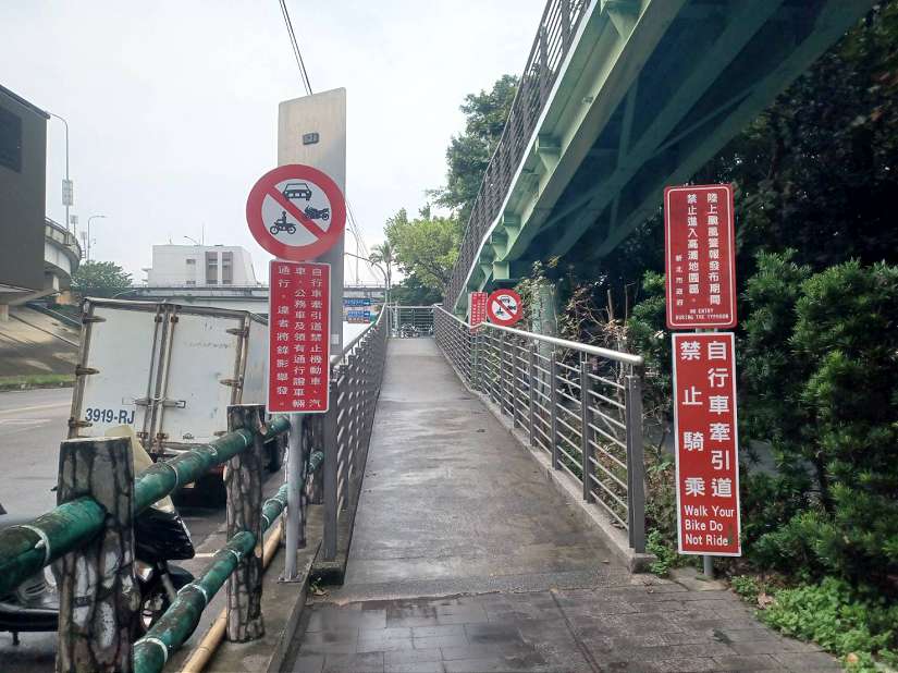 蘆洲蘆堤2號陸橋自行車牽引道(往微風運河方向)-圖/新北市政府提供