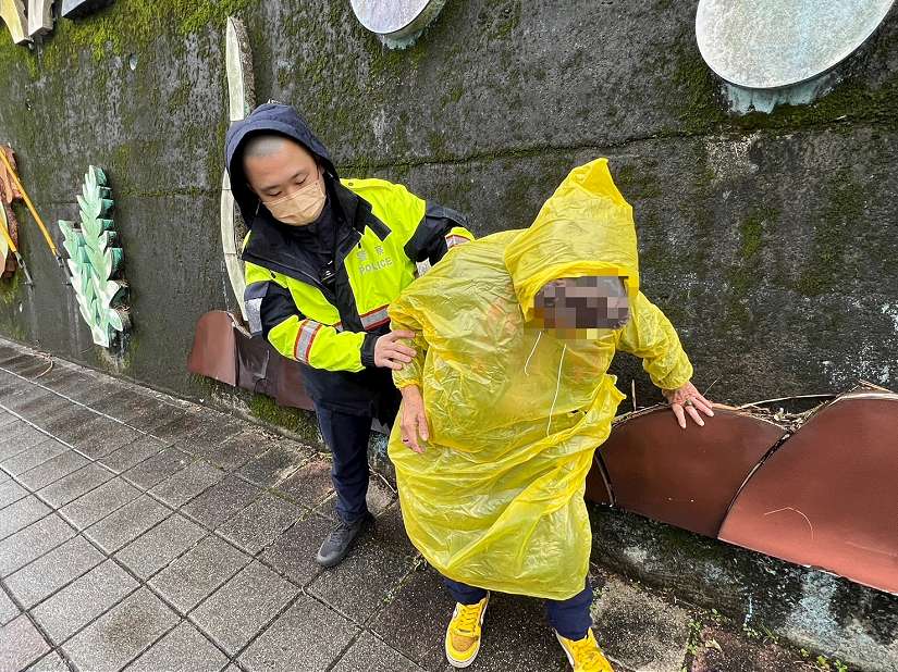 八斗子分駐所員警隨即前往現場關心,經查該名老翁為轄內患有失智症、平時即常有走失情形之陳姓老翁(30年次)。由於氣溫寒冷且降下大雨,考量陳翁身體狀況,先行將其帶返所休息,並提供溫熱水協助暖身,同時聯繫其家屬。隨後警方親自護送陳翁返家,平安交由家屬照顧。