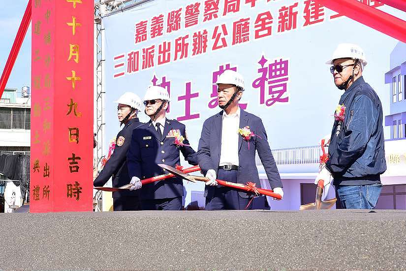 嘉義縣警察局中埔分局三和派出所辦公廳舍新建工程,於114年12月8日上午9時30分在嘉義縣中埔鄉下六段公舘小段398-16、398-26及445地號(中華路與和興路口)舉行動土典禮,典禮由縣長翁章梁、嘉義縣議會議長張明達及警察局局長李權哲等人主持祭祀與動土儀式,祈求新建工程能圓滿順利竣工。