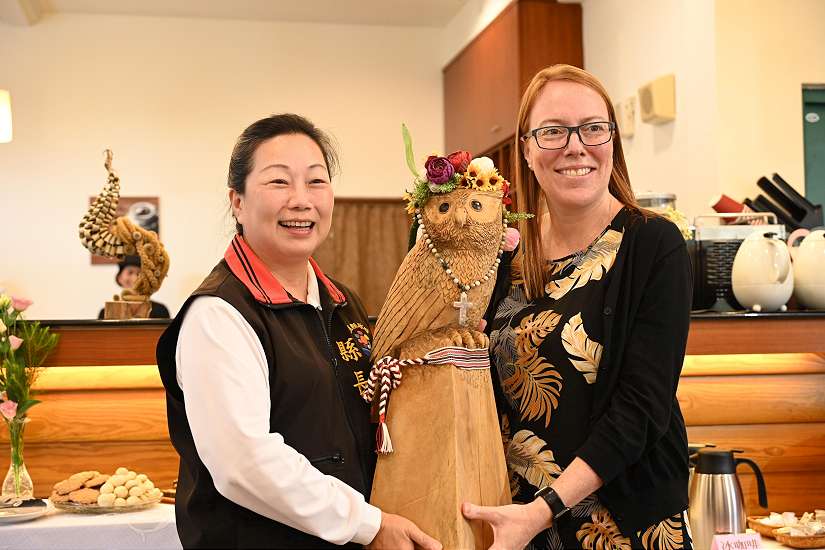 縣長徐榛蔚表示,畢士大充滿愛與奇蹟,在每一位院生的茁壯背後,是無數工作夥伴與志工共同努力的成果,令人深受感動。她特地帶來了一份特別的「貓頭鷹」禮物,貓頭鷹代表著智慧與關懷,將守護在縣長辦公室多年的貓頭鷹送給THE HOPE CAFE,希望孩子們在大家的守護之下順利展開自力更生的旅程,也期勉社會各界持續支持畢士大,一同陪伴更多孩子成長。