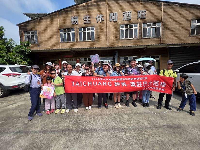 為推廣台中特色酒品並帶動農村觀光,台中市政府農業局昨(28))日舉辦「TAICHUNG醉美—外埔秘釀・尋味酒香」農遊體驗,吸引大批遊客參與,一同走入后里與外埔農村,展開從葡萄園到餐桌的香醇旅程,感受美酒、美食與美景交織的城市風土魅力。