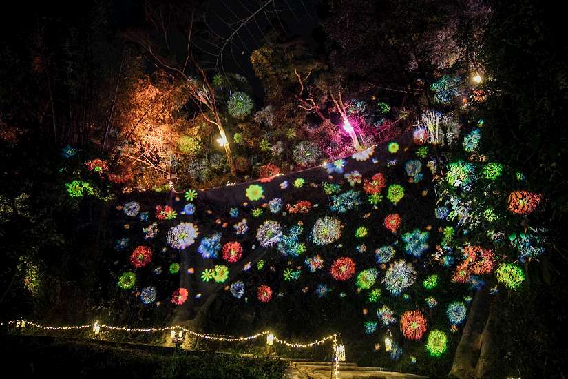 「夜綻之花」模擬峭壁間盛開的花朵,夜晚花蕊亮起後,民眾可輕觸花蕊,變換整串花朵的光影色彩,增添互動趣味;「蝶舞山林」取材大津周邊蝴蝶生態,蝴蝶燈飾沿山道佈置,部份還有動態開闔效果,營造蝴蝶飛舞意象;「文心蘭林」以文心蘭為主題,結合結構裝置與花藝設計,打造可供民眾穿梭其中的花林景觀;「花果天堂」則融合在地植物與水果意象,透過投影與螢光元素,打造必拍的沉浸式光影場景。