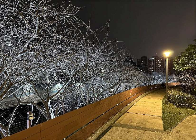 樂活二期公園於今年正式開放,與往年相比賞櫻的空間更有餘裕。大家帶著悠閒的心,漫步在賞花步道上,可以欣賞夜間寒櫻、八重櫻與吉野櫻交錯綻放的景致,從1月底至2月底隨著時間推移,不同品種的櫻花將陸續綻放,為市民帶來難忘的視覺盛宴。