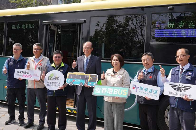 屏東客運董事長郭子義表示,中央推行2030年市區公車全面電動化,屏東客運引進10輛低地板電動公車,每部造價約1,000萬,感謝中央與地方的共同支持,讓電動公車的拼圖從西部走廊延伸到恆春半島,拼起台灣最南端的一角,在乘客服務上也會更上一層樓。