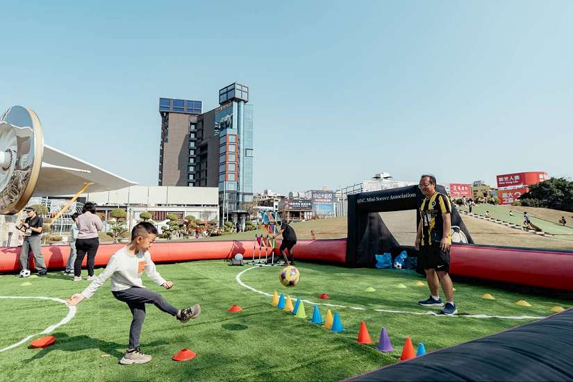 今年首度推出的足球體驗活動成為親子家庭最受矚目的亮點,大型氣墊足球場吸引大小朋友踴躍參與體驗,在奔跑與互動中笑聲此起彼落,現場洋溢熱鬧歡樂氛圍-圖/高雄市政府提供