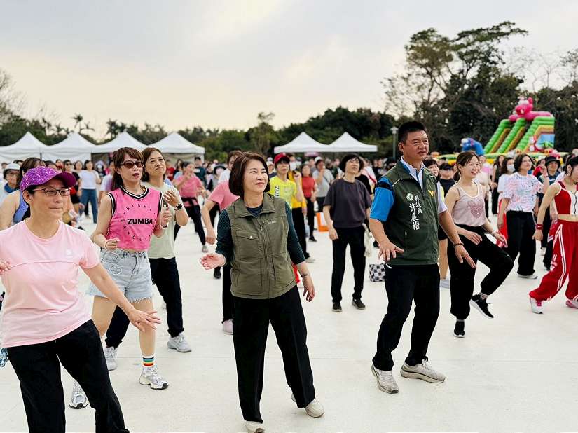萬丹森林公園(15)日正式啟用,屏東縣政府上午舉辦「春天健走嘉年華」,下午則迎來「屏東Young 有氧Jump」活動,近2000名民眾齊聚森林公園廣場中央。縣長周春米也到場與鄉親同樂,在有氧天王潘若迪帶領下跟著音樂熱情舞動,一起揮灑汗水,展現屏東全民運動的健康風氣。
