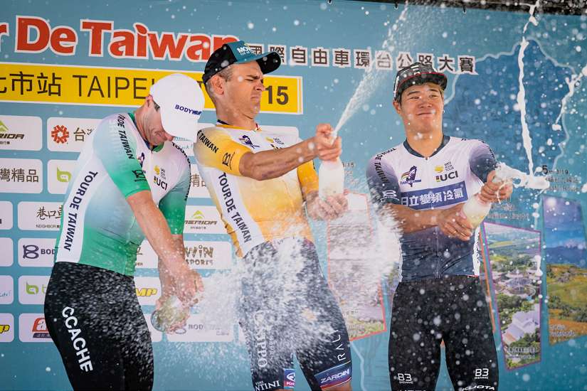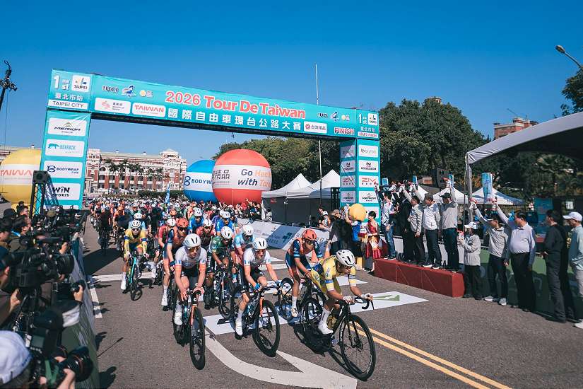 「2026國際自由車環臺公路大賽」首站—臺北市站,(15)日於總統府前凱達格蘭大道盛大登場,臺北市市長蔣萬安親臨現場,為來自全球40國的24支頂尖職業車隊領騎熱身並鳴笛起程。經過9圈全長約80.6公里的高強度城市繞圈賽激戰,最終由義大利索盧森車隊塞爾維亞選手Dušan Rajović以1小時35分54秒,平均時速50.43公里率先衝線,奪下本屆環臺賽首站單站冠軍。