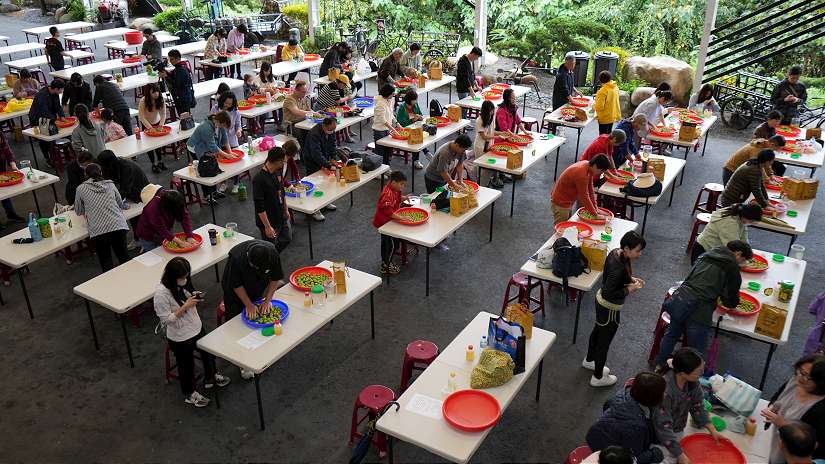 國姓秘境採梅趣,很多家庭報名參加,大人帶著小朋友,一家老小在有機梅園歡樂採集梅子;中午享用客家美食,並透過國姓鄉農會老師教導,體驗手作醃製Q梅的趣味。