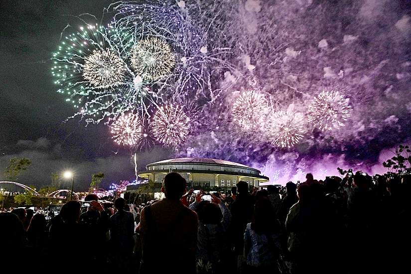 新北市美術館(26)日迎來開館系列活動啟動儀式,侯友宜特別到場與民眾一同欣賞長達300秒的璀璨煙火秀-圖/新北市政府提供