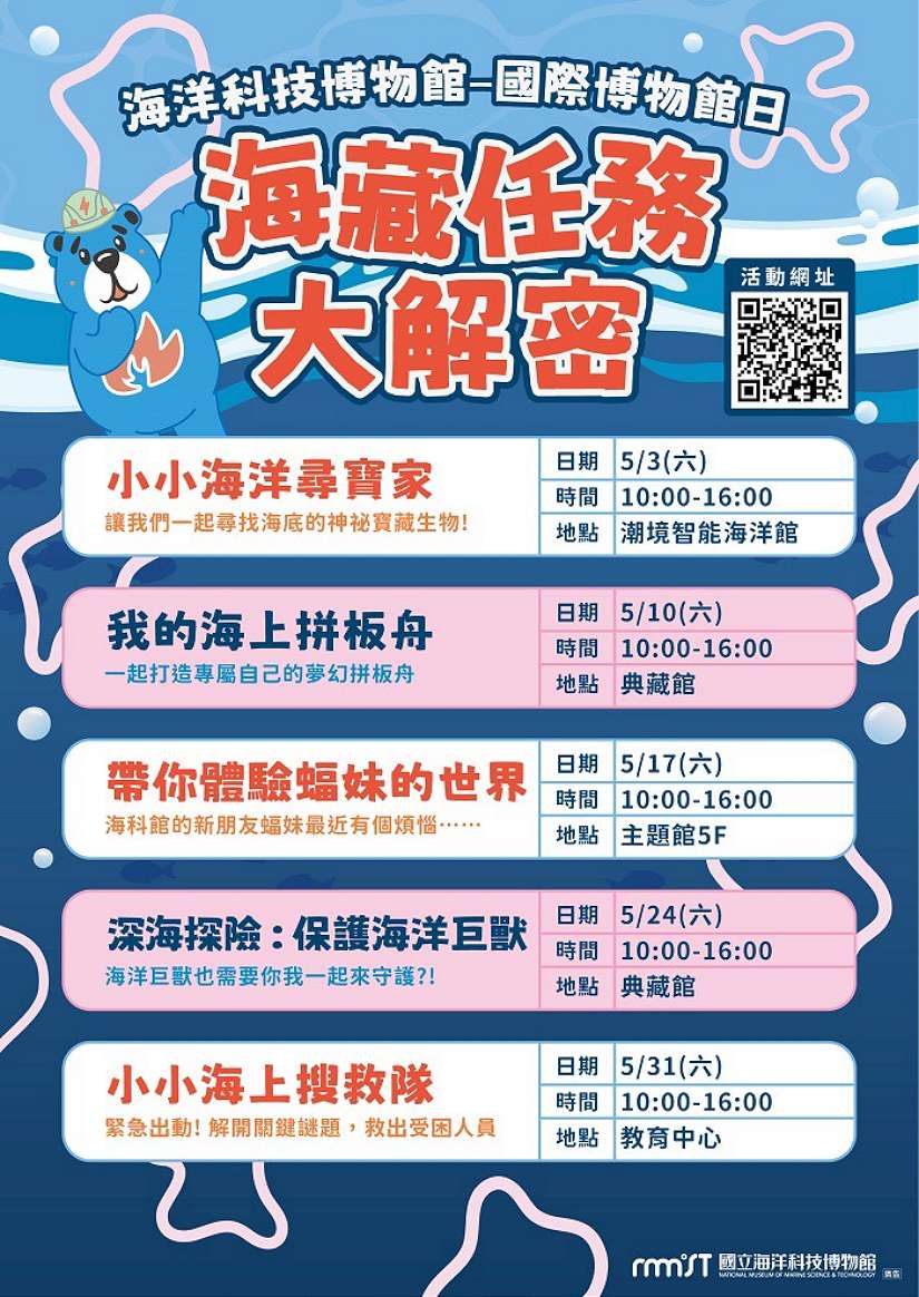 為迎接一年一度的國際博物館日,國立海洋科技博物館特別策劃一系列寓教於樂的親子活動,於五月期間每週六熱鬧登場,邀請大小朋友走進海洋世界,展開一場充滿知識與趣味的探索之旅。