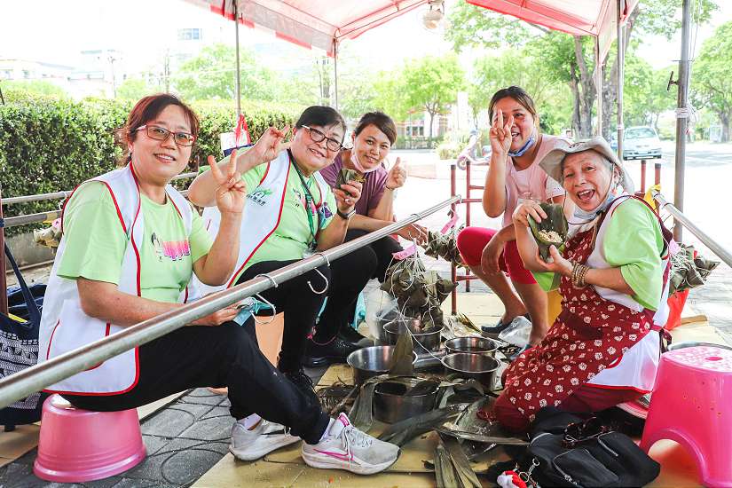 家扶中心社工與志工帶領親子一同包粽,翁章梁也挽袖加入包粽行列,並與孩子進行立蛋挑戰,親手為小朋友繫上香包,祈求平安健康,家扶中心也準備端午禮金致贈兒童,為每個家庭送上佳節祝福。