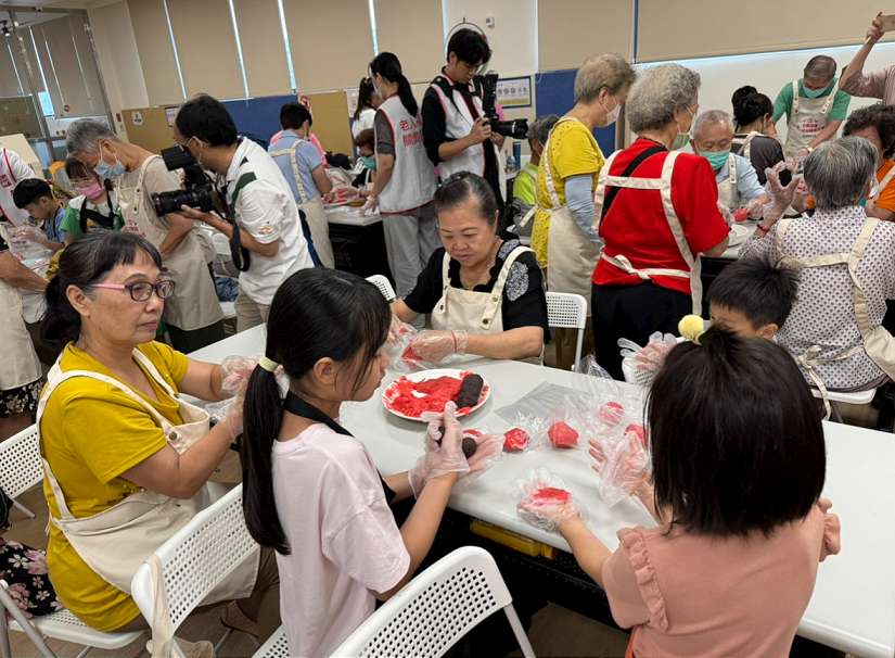 當日活動於素有「粿仔街」之稱的大稻埕延三商圈周邊的萬和兒童中心展開,該區為臺北傳統米食文化的重要據點。特別規劃由國順里陳穎慧里長帶領長輩與兒童體驗並製作紅龜粿,透過實作與互動,讓長者分享自身生活記憶與在地故事,協助孩子更深入認識自己所處的社區文化與歷史脈絡。除此之外,萬和兒童中心亦設置「兒童繪本閱讀角落」,展示由中心與兒童於112年起共同創作的繪本《阿嬤的手路菜》。該作品透過兒童走訪在地耆老,記錄長輩的拿手料理與背後的家庭故事,傳遞食物記憶與世代情感,並於114年初正式出版。當天開放現場閱讀,邀請長者與孩子共讀共感,讓文化教育自然融入生活日常。