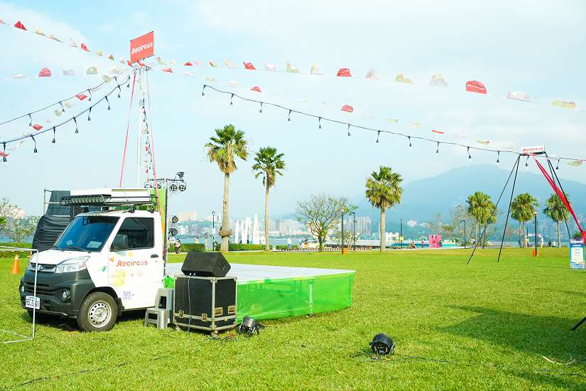 「天馬兒童劇團」使用獨家「移動綠劇場」,以電動車作為行動舞台車,有效減少巡演過程中的碳排放;同時舞台布景與道具也力求精簡化,落實低碳排與永續教育理念,從活動布置到內容推廣全面實踐環保永續精神。